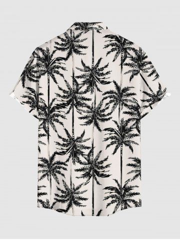 Plus Size Coconut Tree Print Buttons Pocket Hawaii Shirt For Men - Black - L