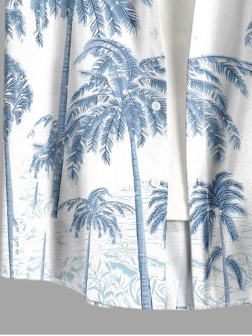 Plus Size Coconut Tree Print Buttons Pocket Hawaii Shirt For Men - Light Blue - 2xl