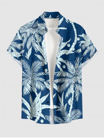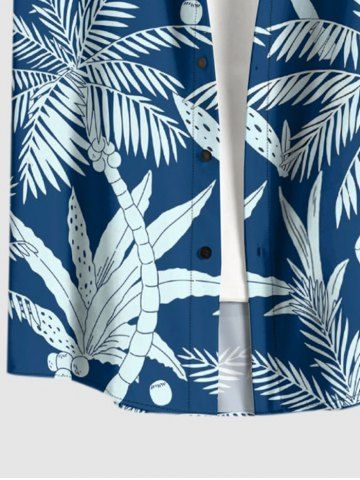 Plus Size Coconut Tree Print Buttons Pocket Hawaii Shirt For Men - Peacock Blue - S