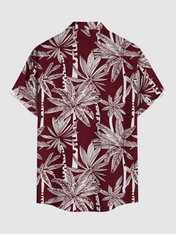 Plus Size Coconut Tree Print Hawaii Button Pocket Shirt For Men - Red Wine - Xl