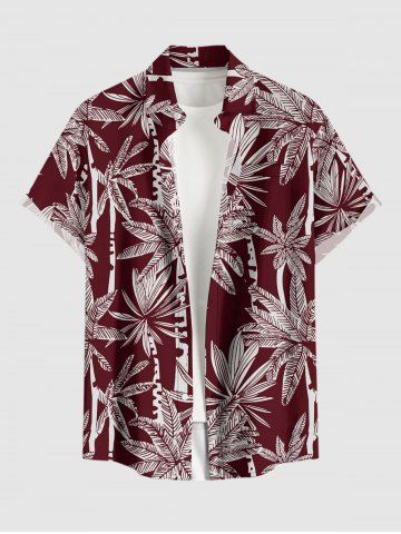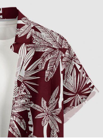 Plus Size Coconut Tree Print Hawaii Button Pocket Shirt For Men - Red Wine - 4xl
