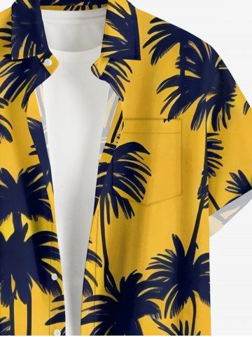 Plus Size Coconut Tree Print Hawaii Button Pocket Shirt For Men - Yellow - S