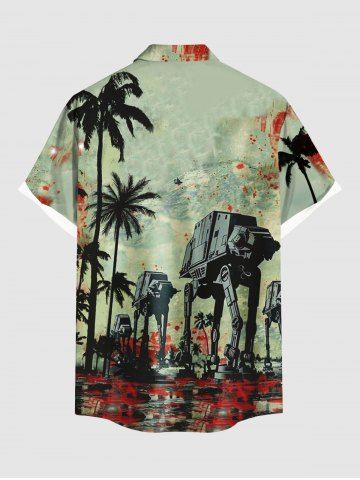 Plus Size Coconut Tree Robot Paint Splatter Print Buttons Pocket Hawaii Shirt For Men - Green - M