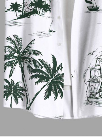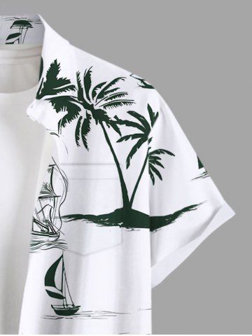 Plus Size Coconut Tree Sailboat Cruise Print Hawaii Button Pocket Shirt For Men - White - 5xl