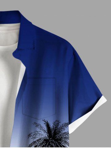 Plus Size Coconut Tree Sailboat Ombre Print Buttons Pocket Hawaii Shirt For Men - Navy Blue - S