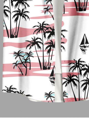 Plus Size Coconut Tree Sailboat Print Buttons Pocket Hawaii Shirt For Men - White - S