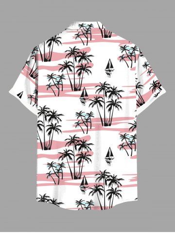 Plus Size Coconut Tree Sailboat Print Buttons Pocket Hawaii Shirt For Men - White - M
