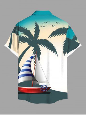 Short Sleeves Shirts > Plus Size Coconut Tree Sailboat Rudder Ombre Print Buttons Pocket Hawaii Shirt For Men