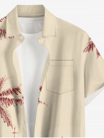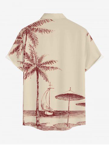 Plus Size Coconut Tree Sailboat Seascape Print Buttons Pocket Hawaii Shirt For Men - Light Coffee - L