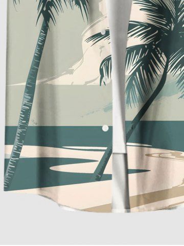 Plus Size Coconut Tree Sea Beach Cloud Print Hawaii Button Pocket Shirt For Men - Green - L