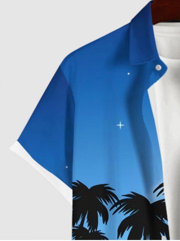 Plus Size Coconut Tree Sea Beach Ombre Galaxy Moon Print Hawaii Button Pocket Shirt For Men - Blue - Xl