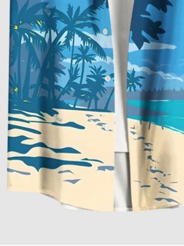 Plus Size Coconut Tree Sea Beach Ombre Sky Print Hawaii Button Pocket Shirt For Men - Blue - M