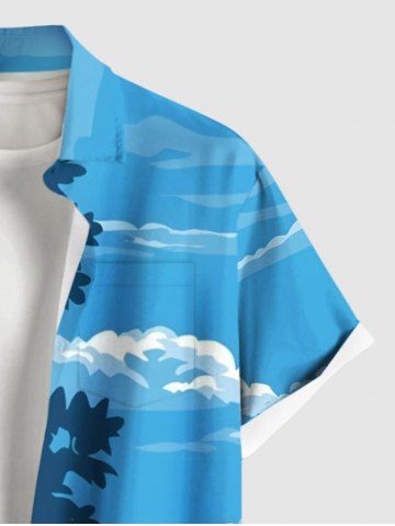 Plus Size Coconut Tree Sea Beach Ombre Sky Print Hawaii Button Pocket Shirt For Men - Blue - 5xl