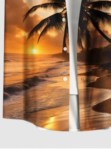 Plus Size Coconut Tree Sea Beach Ombre Sunset Print Hawaii Button Pocket Shirt For Men - Orange - M