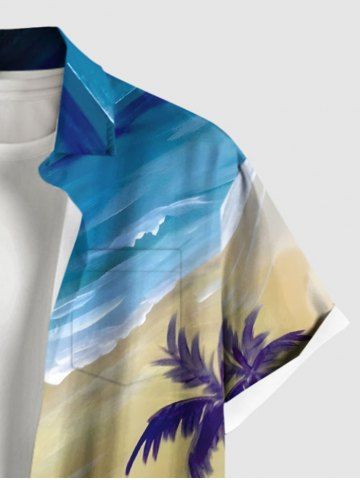 Plus Size Coconut Tree Sea Beach Print Hawaii Button Pocket Shirt For Men - Blue - M