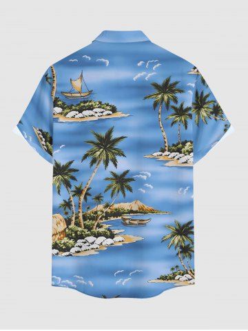 Plus Size Coconut Tree Sea Beach Print Hawaii Button Pocket Shirt For Men - Sky Blue - L