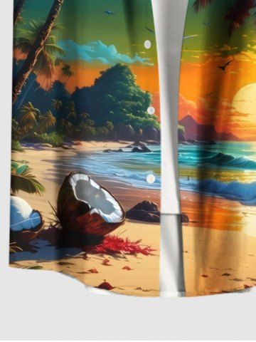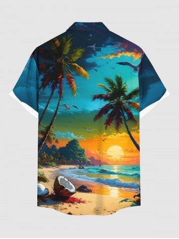 Short Sleeves Shirts > Plus Size Coconut Tree Sea Beach Seascape Print Hawaii Button Pocket Shirt For Men