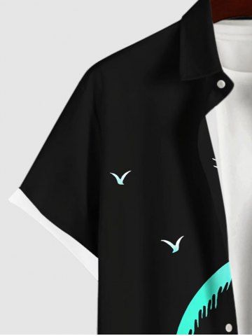 Plus Size Coconut Tree Sea Bird Print Buttons Pocket Hawaii Shirt For Men - Black - L