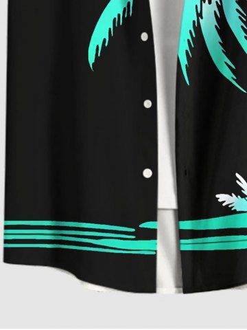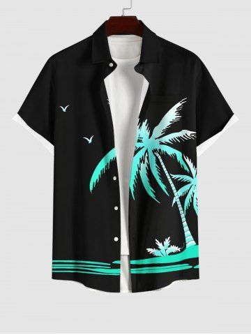 Plus Size Coconut Tree Sea Bird Print Buttons Pocket Hawaii Shirt For Men - Black - 3xl