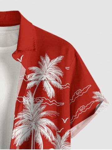 Plus Size Coconut Tree Sea Bird Print Hawaii Button Pocket Shirt For Men - Red - L