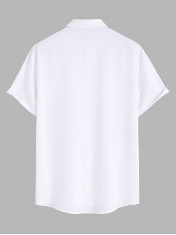 Plus Size Coconut Tree Sea Boat Bird Print Buttons Pocket Hawaii Shirt For Men - White - M