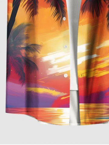 Plus Size Coconut Tree Sea Cloud Print Buttons Pocket Hawaii Shirt For Men - Orange - M