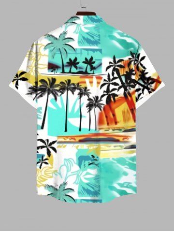 Short Sleeves Shirts > Plus Size Coconut Tree Sea Colorblock Print Hawaii Button Pocket Shirt For Men