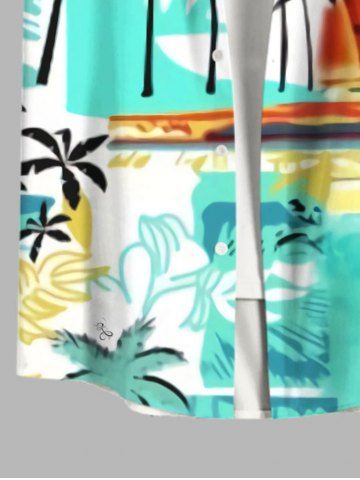 Plus Size Coconut Tree Sea Colorblock Print Hawaii Button Pocket Shirt For Men - Multi-a - L
