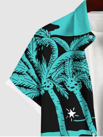 Plus Size Coconut Tree Sea Colorblock Star Moon Print Hawaii Button Pocket Shirt For Men - Green - 3xl