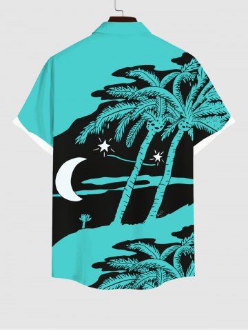 Short Sleeves Shirts > Plus Size Coconut Tree Sea Colorblock Star Moon Print Hawaii Button Pocket Shirt For Men