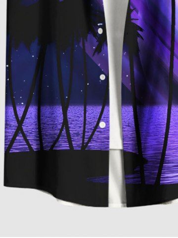 Plus Size Coconut Tree Sea Galaxy Print Hawaii Button Pocket Shirt For Men - Purple - 4xl