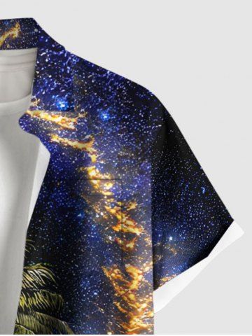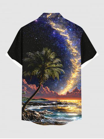 Plus Size Coconut Tree Sea Glitter Galaxy Print Hawaii Button Pocket Shirt For Men - Black - 5xl