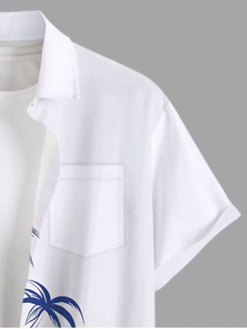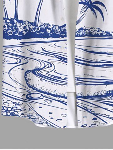 Plus Size Coconut Tree Sea Hand-painted Print Hawaii Button Pocket Shirt For Men - White - 6xl