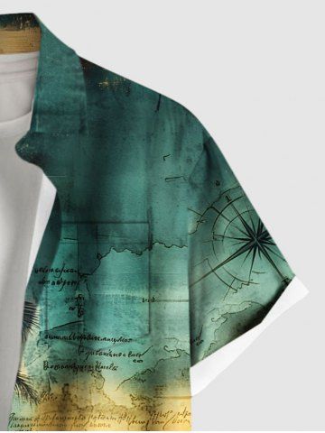 Plus Size Coconut Tree Sea Map Print Hawaii Button Pocket Shirt For Men - Green - 4xl