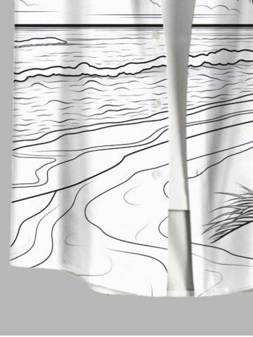 Plus Size Coconut Tree Sea Moon Cloud Print Hawaii Button Pocket Shirt For Men - Black - 4xl
