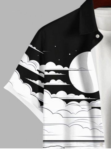 Short Sleeves Shirts > Plus Size Coconut Tree Sea Moon Cloud Print Hawaii Button Pocket Shirt For Men