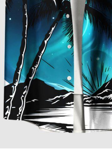 Plus Size Coconut Tree Sea Mountain Aurora Galaxy Print Buttons Pocket Hawaii Shirt For Men - Green - Xl