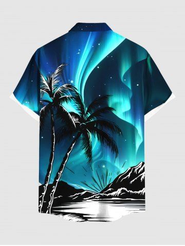 Short Sleeves Shirts > Plus Size Coconut Tree Sea Mountain Aurora Galaxy Print Buttons Pocket Hawaii Shirt For Men