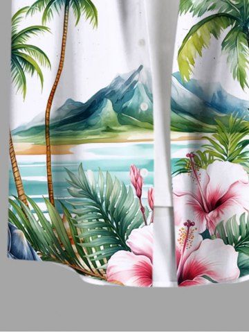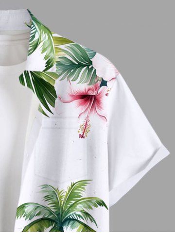 Plus Size Coconut Tree Sea Mountain Tropical Leaves Floral Printe Hawaii Button Pocket Shirt For Men - White - 4xl