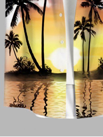 Plus Size Coconut Tree Sea Ombre Dusk Print Hawaii Button Pocket Shirt For Men - Multi-a - 3xl