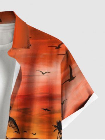 Plus Size Coconut Tree Sea Ombre Dusk Print Hawaii Button Pocket Shirt For Men - Orange - M