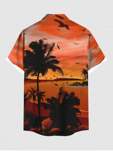 Plus Size Coconut Tree Sea Ombre Dusk Print Hawaii Button Pocket Shirt For Men - Orange - 2xl