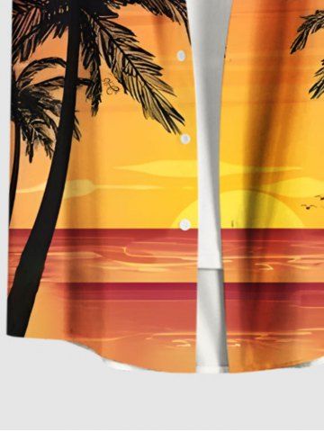 Plus Size Coconut Tree Sea Ombre Dusk Sunset Print Hawaii Button Pocket Shirt For Men - Orange - Xl