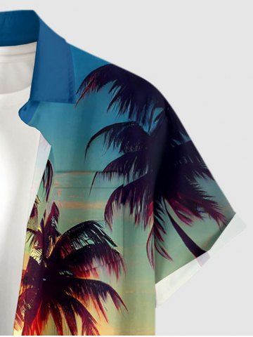 Plus Size Coconut Tree Sea Ombre Dusk Sunset Print Hawaii Button Pocket Shirt For Men - Blue - S