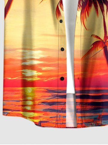 Short Sleeves Shirts > Plus Size Coconut Tree Sea Ombre Dusk Sunset Print Hawaii Button Pocket Shirt For Men