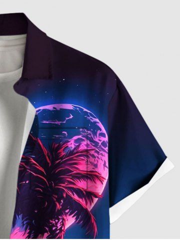 Plus Size Coconut Tree Sea Ombre Heart Print Hawaii Valentines Button Pocket Shirt For Men - Deep Blue - 5xl