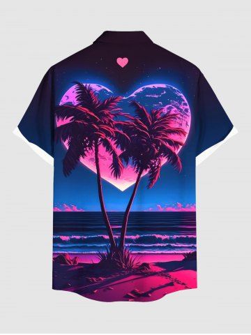Short Sleeves Shirts > Plus Size Coconut Tree Sea Ombre Heart Print Hawaii Valentines Button Pocket Shirt For Men