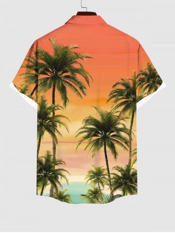 Plus Size Coconut Tree Sea Ombre Sky Print Buttons Pocket Hawaii Shirt For Men - Multi-a - 2xl