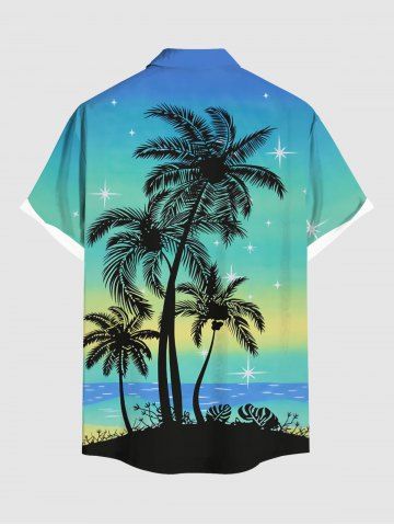 Plus Size CoconuT Tree Sea Ombre Sky Print Buttons Pocket Hawaii Shirt For Men - Sky Blue - S