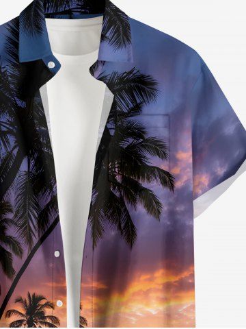 Plus Size Coconut Tree Sea Ombre Sky Print Hawaii Button Pocket Shirt For Men - Deep Blue - Xl